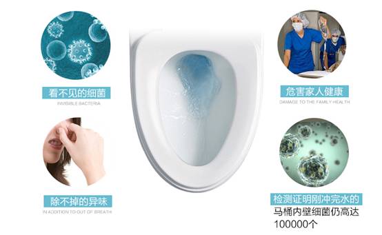 这样的话,就能很直观的解决了在冲水时细菌飞溅,远离细菌的困扰,腹泻、皮炎、急性肠胃炎、妇科感染之类的常见病症自然没有了“可乘之机”。